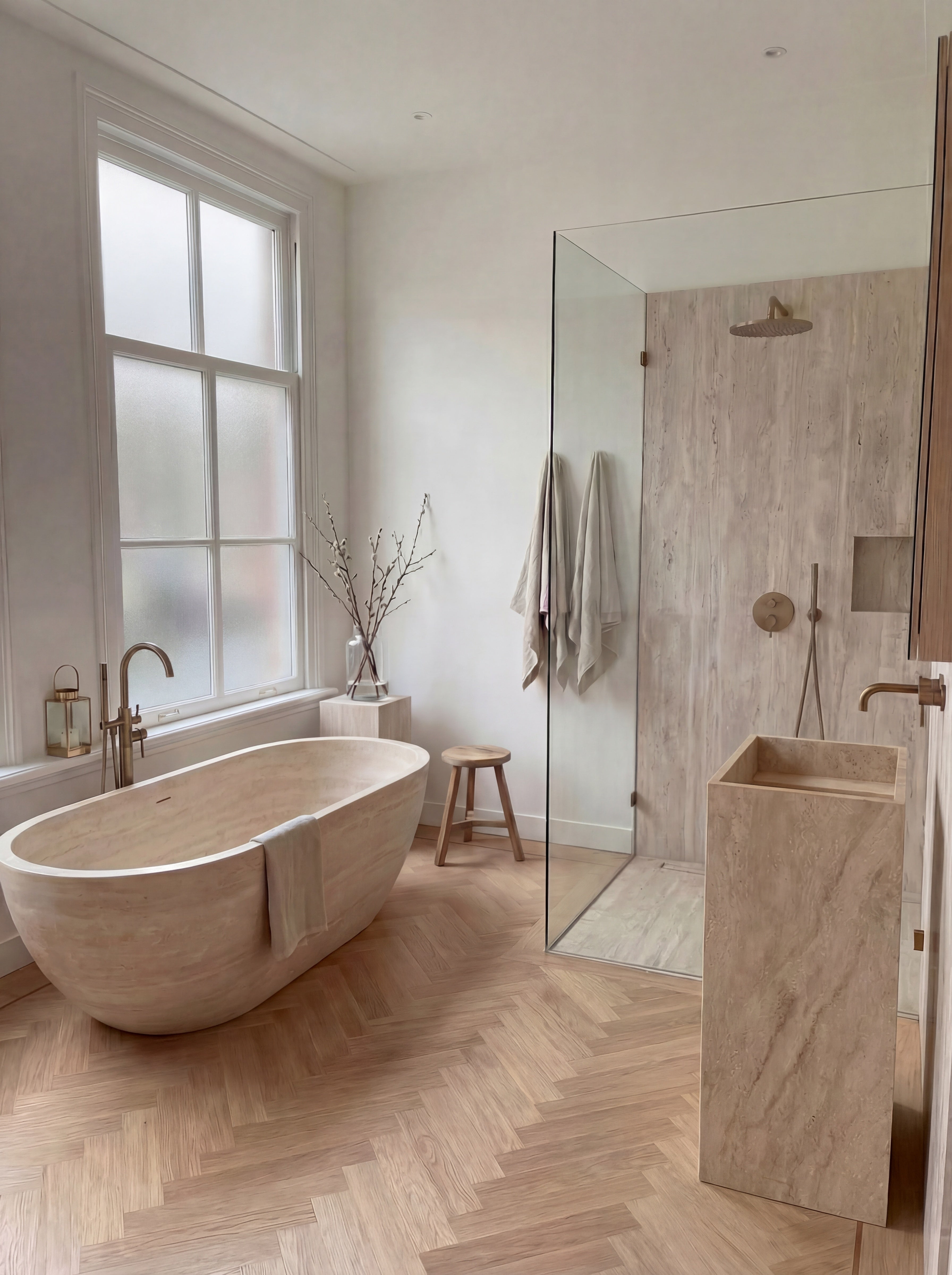 A statement of timeless elegance — sculptural clarity, refined proportions, and enduring strength. This solid travert... -