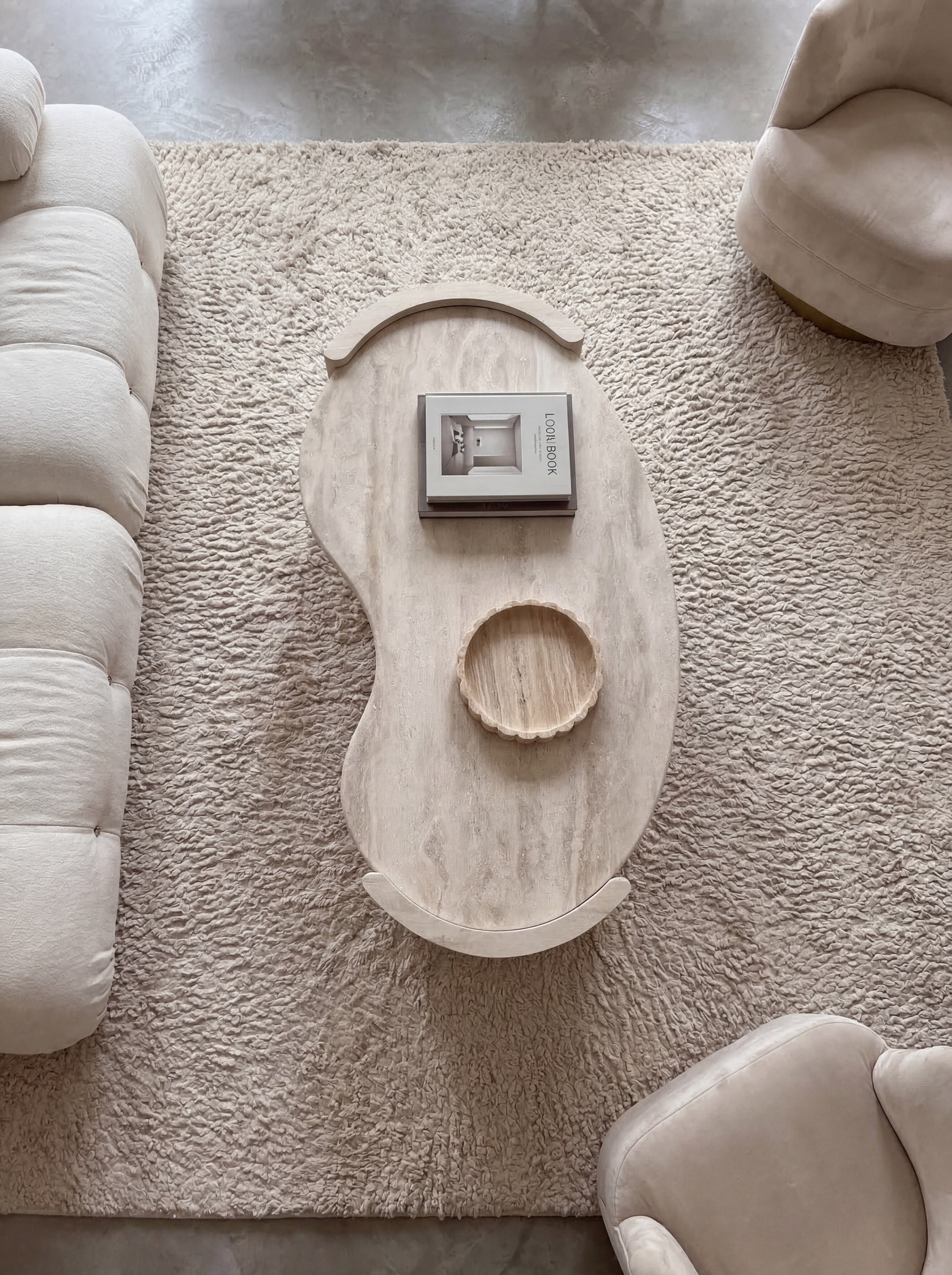 Solid Travertine Coffee Table – Sculpted Pebble Edition