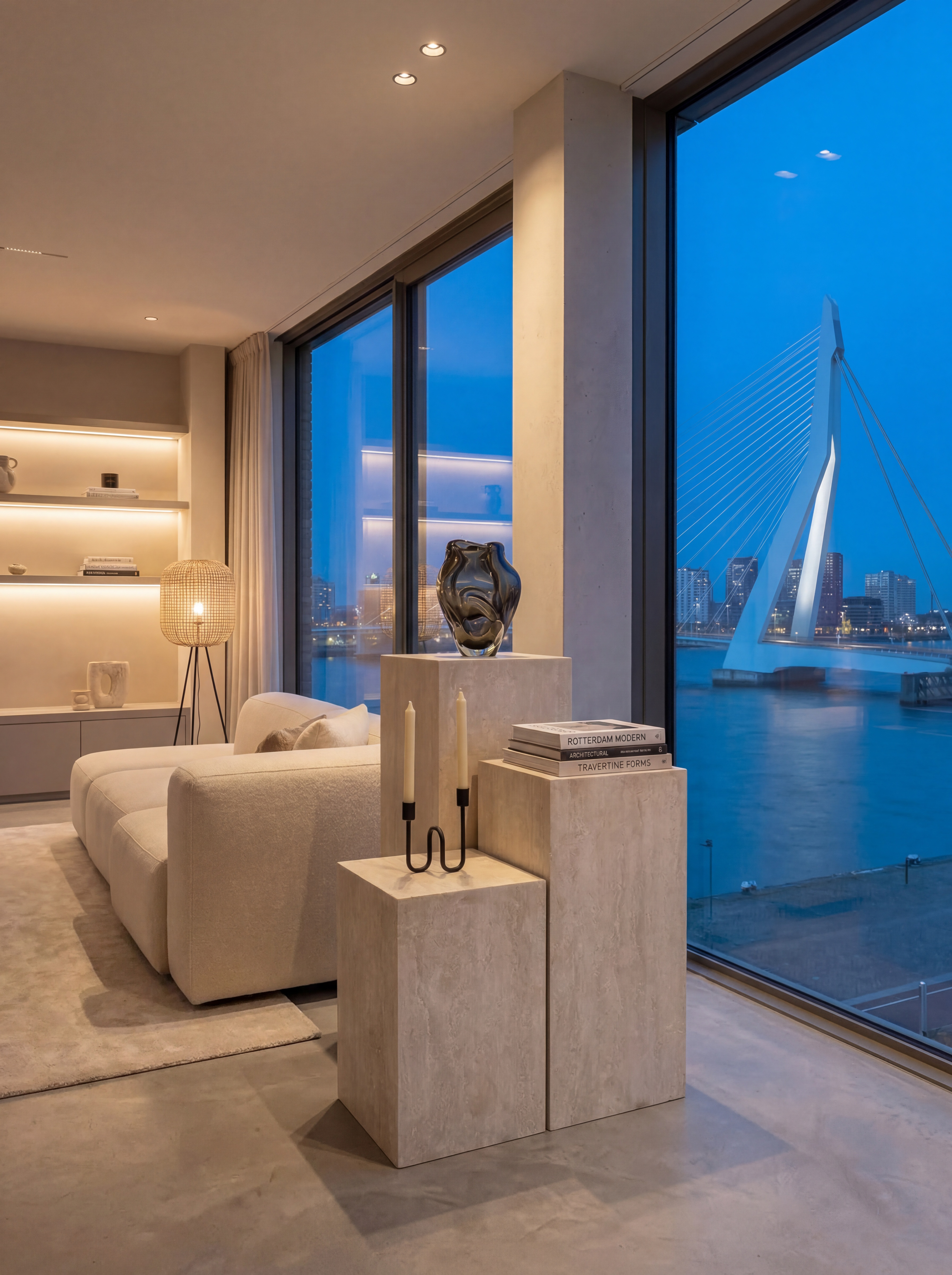Height: 75 cm | Solid premium travertine A celebration of structure and stone — refined proportions, bold presence, a... -