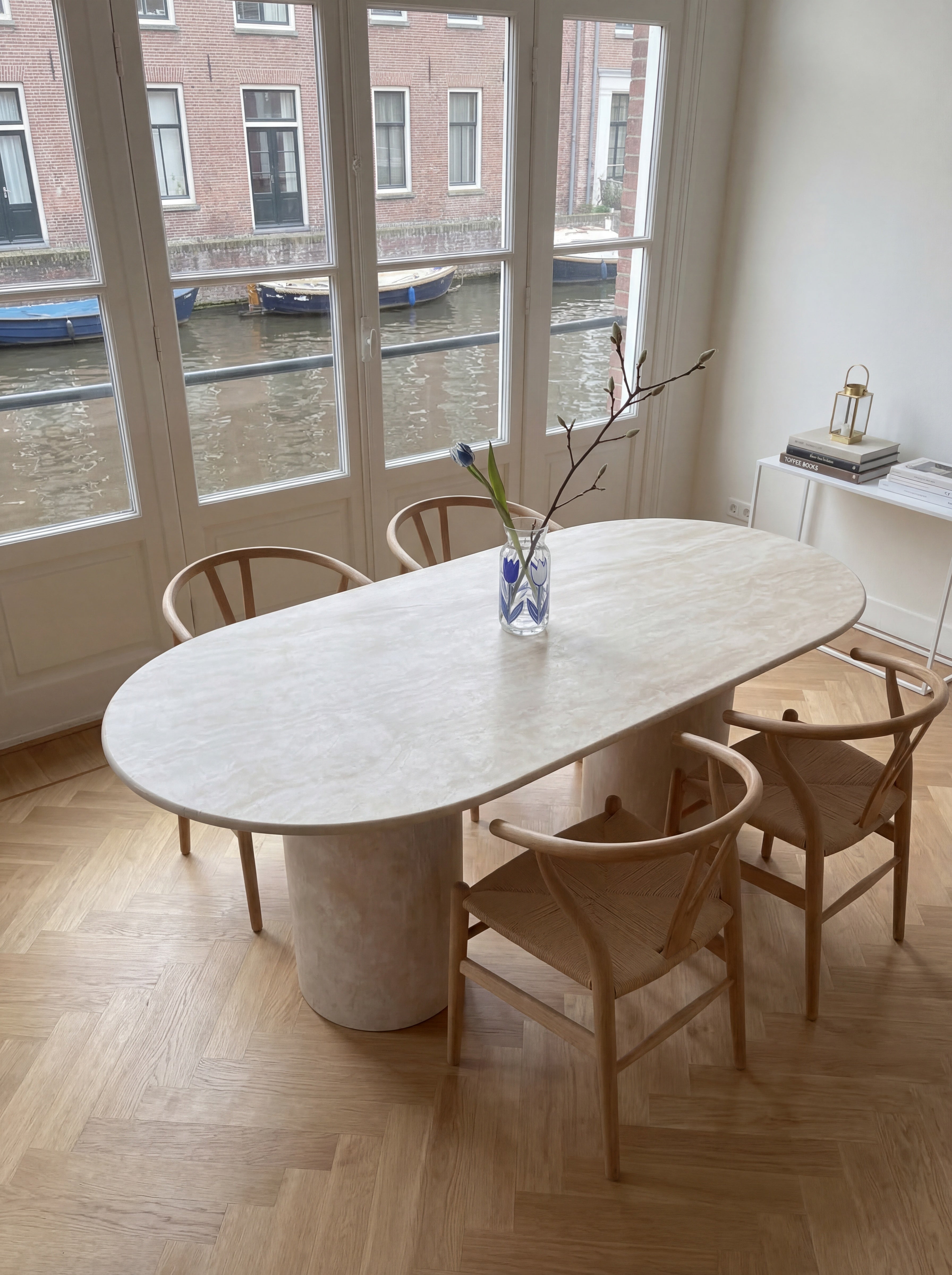 Solid Travertine Dining Table – Danish Oval/ Fluted Base